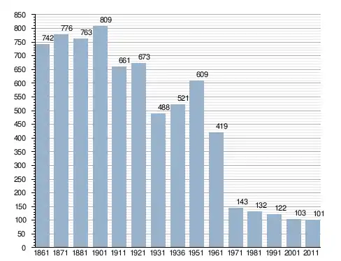 في سنة 1861 بلغ عدد السكان 742 نسمة، وتطور العدد ليصل في سنة 2011 لـ 101 نسمة.