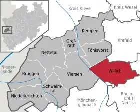 ويليش (بالألمانية: Willich) هي بلدة ألمانية تقع في فيرزن في ألمانيا.[7] يقدر عدد سكانها بـ 51,970 نسمة .