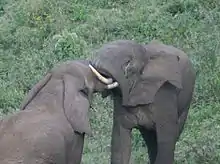 تستخدم الفيلة بعض الأحاديث التي تتجاوز نطاق السمع للبشر،[39] للتواصل عبر مسافات كبيرة. وتشمل طقوس التزاوج الفيل تلامس لطيف من جذوع.[40]