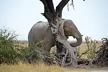 أثناء التغذية، يستخدم الفيل الأفريقي خرطومه لنتف الأوراق في الفروع الأشجار، مما قد يتسبب في أضرار جسيمة للنباتات. يحدث تخمير الطعام في قاع البحر، مما يسمح بتناول كميات كبيرة من الطعام.[41]