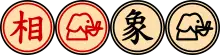 تسمى الفيلة السوداء في الشطرنج الصيني 象 xiàng (فيل) والحمراء 相 xiàng (وزير)، ويتموضعون بجانب المستشارين، تتحرك الفيلة وتأخذ بمربعين قطريا لكن لا يمكنها القفز فوق القطع التي تعترض سبيلها وحركتها هذه تشبه القطعة 田 Tián (ساحة)، إن كان الفيل لا يستطيع التحرك قطريا بسبب وجود قطع تشغل مربعاته فذلك يعرف "باعتراض عين الفيل" (塞象眼).