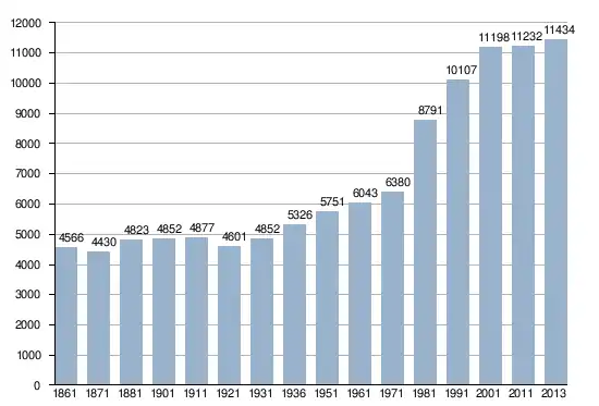 في سنة 1861 بلغ عدد السكان 4٬566 نسمة، وتطور العدد ليصل في سنة 2013 لـ 11٬434 نسمة.