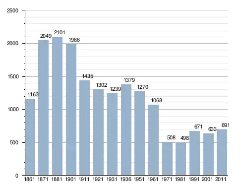 في سنة 1861 بلغ عدد السكان 1٬163 نسمة، وتطور العدد ليصل في سنة 2011 لـ 691 نسمة.