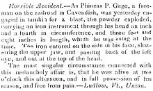 في 13 سبتمبر عام 1848، وكان غيج قد قام بتوجيه فريق العمل لنسف الصخور بينما كان يستعد لرصف طريق السكة الحديد روتلاند برلنغتون إلى الجنوب من مدينة كافنديش، فيرمونت. تجهيز الانفجار استلزم عمل حفرة عميقة إلى البروز من الصخر. مضيفا مسحوق التفجير ، والصمامات والرمل ثم ضغط هذه الشحنة في حفرة باستخدام وتد الحديد.