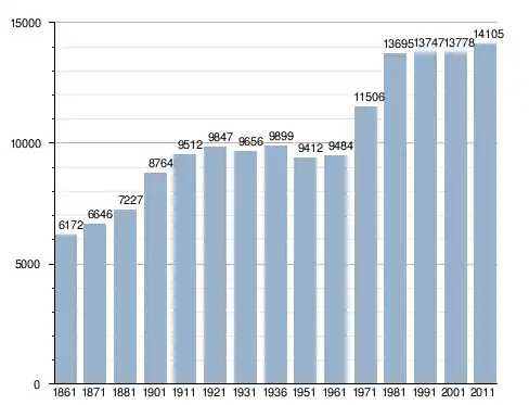 في سنة 1861 بلغ عدد السكان 6٬172 نسمة، وتطور العدد ليصل في سنة 2011 لـ 14٬105 نسمة.