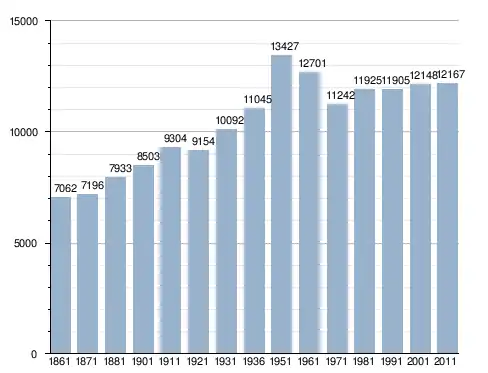 في سنة 1861 بلغ عدد السكان 7٬062 نسمة، وتطور العدد ليصل في سنة 2011 لـ 12٬167 نسمة.