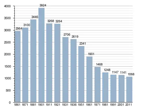 في سنة 1861 بلغ عدد السكان 2٬964 نسمة، وتطور العدد ليصل في سنة 2011 لـ 1٬068 نسمة.