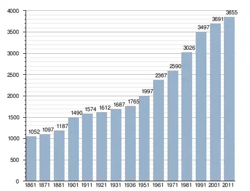 في سنة 1861 بلغ عدد السكان 1٬052 نسمة، وتطور العدد ليصل في سنة 2011 لـ 3٬855 نسمة.