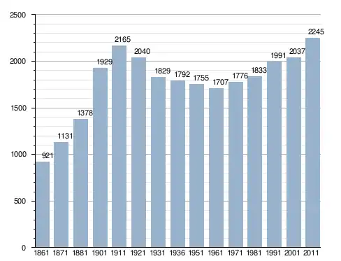 في سنة 1861 بلغ عدد السكان 921 نسمة، وتطور العدد ليصل في سنة 2011 لـ 2٬245 نسمة.
