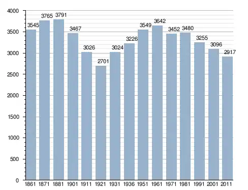 في سنة 1861 بلغ عدد السكان 3٬545 نسمة، وتطور العدد ليصل في سنة 2011 لـ 2٬917 نسمة.