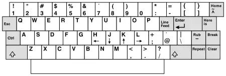 قام جوي باستخدام طرفية حاسوب (أو وحدة تحكم) من نوع لير سيجلر (Lear Siegler) التي تحمل الاسم (ADM3A) حيث كان مكان زر الهروب Esc في نفس المكان المخصص حاليا لزر الإزاحة Tab ⇆ على لوحات المفاتيح من نوع (IBM PC) المعروفة، وكان ذلك مناسباً لوضع وظيفة تبديل الأوضاع على ذلك الزر (زر الهروب) "و تجدر الإشارة هنا إلى أن هناك وضعين للتعامل مع محرر النصوص في آي وهما وضع الأدخال ووضع الأوامر"، بالإضافة إلى استخدام أزرار الحروف (h,j,k,l) لتنفيذ أكثر من وظيفة ففي وضع الإدخال تتصرف هذه الأزرار عند الضغط عليها كبقية أزرار لوحة المفاتيح حيث تقوم بطباعة الحرف المسند إليها وفي وضع الأوامر تتصرف بنفس وظيفة الأسهم حيث يقوم زر الحرف h بتحريك المؤشر إلى اليسار ويقوم زر الحرف j بتحريك المؤشر إلى الأسفل ويقوم زر الحرف k بتحريك المؤشر إلى الإعلى وأخيراً يقوم زر الحرف l بتحريك المؤشر إلى اليمين، ولم تكن لوحة ADM3A تحوي على المزيد من أزرار المؤشر سوى المذكورة سابقاً. و قد فسر جوي أن نتيجة الاقتضاب وأوامر الحروف الأحادية وقدرة الكتابة بشكل مباشر في حال فتح شاشة التحرير تعود إلى البطء في تحويل إشارات أزرار المفاتيح التي يتم الضغط عليها إلى أحرف مطبوعة على جهاز الإخراج وأنه أراد أن يستغل وقت اظهار الكلمات على الشاشة التي تظهر النصوص المطبوعة بسرعة أبطأ من سرعة الطباعة لدى المستخدم في طباعة المزيد من النصوص.