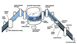 - يقوم كل رأس في أسطوانة الرؤوس بتسجيل حقل فيديو على الشريط بشكل قطاع مائل .
