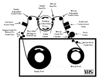 كما في جميع أنظمة الفيديو كاسيت تقريباً، تقوم أجهزة VHS بسحب الشريط إلى خارج الكاسيت ولفه حول الأسطوانة المائلة الحاوية للرؤوس، والتي تدور بسرعة 1798.2 دورة\دقيقة في الأجهزة العاملة بنظام NTSC [5] و 1500 دورة\دقيقة في الأجهزة العاملة بنظام PAL حيث أن كل دورة كاملة لأسطوانة الرؤوس تقابل إطار فيديو واحد. يستخدم نظام VHS أسلوب التلقيم M-loading، والذي يقوم فيه ذراعا تلقيم بسحب الشريط ولفه حول أكثر من 180 درجة من محيط أسطوانة الرؤوس بشكلٍ مشابهٍ تقريباً لشكل الحرف M.