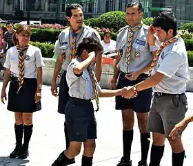 ![]() قادة يرحبون بصبي في الكشافة، مارس 2010، مكسيكو سيتي، المكسيك. | |