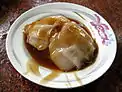 الفلبين | حلوى البودينغ تصنع من الأرز المطحون بالحجر والسكر وحليب جوز الهند، توضع على وجه الطبق الجبن أو البيض المالح أو اللحم المفروم. |