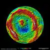 | المريخ | North Polar Basin | 10,600 × 8,500 km (6,550 × 5,250 mi) | 6,780 km | 125–155% | ![]() |