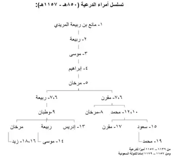 هم مجموعة من الأمراء المنتمين إلى عشيرة المردة والذين حكموا مدينة الدرعية من سنة 850هـ/1447م حتى سنة 1157هـ/1744م عندما عقد محمد بن سعود ومحمد بن عبد الوهاب ما عرف باتفاق الدرعية، وهكذا تحولت الإمارة إلى دولة.[1]