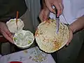 خبز رقيق محمص، يحشى من الداخل بحشوات مختلفة. يجب أن لا تكون العجينة مخمرة. أما أشهر الحشوات المستخدمة فهي البطاطا المهروسة. حيث توضع الحشوة على نصف الخبزة الرقيقة وتغطى بالنصف الآخر. ثم يدهن الوجه بالزبدة. |