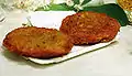 Pancake | Shallow-fried pancakes of grated or ground potato, flour and egg, often flavored with grated onion or garlic and seasoning. They may be topped with a variety of condiments, ranging from the savory (such as sour cream or cottage cheese) to the sweet (such as apple sauce or sugar), or they may be served ungarnished. They are sometimes made from mashed potatoes to produce pancake-shaped croquettes. | |
