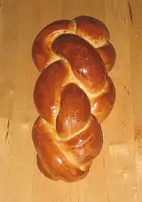 مخمّر | اليهود | خبز مجدول، مصنوع من دقيق القمح والخميرة والزيت أو الزبدة والبيض (اختياري)؛ عادةً ما يصنعه الشعب اليهودي في أيام السبت. |