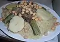 ومن أشهر أطباق الخضروات، طبق البطاطا وفيه أنواع مقلية وبطاطا كوشة محشية أو غير محشية وبطاطا شوربة، طبق فاصوليا خضراء.