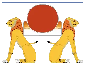 يمثلان عينا حورس رمز الشمس والقمر | اتخذت هي وشو شكل الأسد. | ![]() | |||||||||
