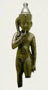 ابن «حتحور» ربة دندرة و«حورس» رب «أدفو» وتعتبر دندرة مقر عبادته | يصور على هيئة طفل يهز الصلاصل | ![]() | |||||||||