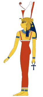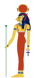 إلهة للحرب | على هيئة امرأة برأس لبؤة يعلوه قرص الشمس. | ![]() | |||||||||
