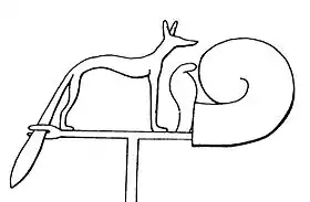 إله برأس ابن آوي واقفاً على أقدامه الأربعة | ![]() | |||||||||