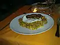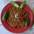 | عصبان | تونس | A traditional kind of تونسn sausage, stuffed with a mixture of أرز, herbs, لحم ضأن, chopped liver and قلب.[46][47] This dish is usually served alongside the main meal of rice or كسكسي, often on special occasions. | |