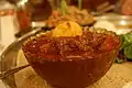 | Tomato bredie | جنوب أفريقيا | A South African stew, referred to in لغة أفريقانية as 'tamatiebredie', normally made with لحم ضأن, is cooked for a very long time, and its seasonings include قرفة، حب الهال، زنجبيل and قرنفلs as well as chilli. It is of هولندا origin. | |