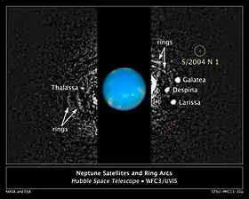 - أقمار نبتون أقمار نبتون 14 قمرا معروفة، وأكبر هذه الاقمار القمر ترايتون ويدور عكس اتجاه دوران نبتون، الذي اكتشفه وليم لاسيل في 10 أكتوبر 1846، بعد 17 يوما من اكتشاف نبتون نفسه تمت تسمية أقمار نبتون على أسماء الحوريات في الأساطير اليونانية.