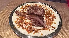 | المفطح | عبارة عن خروف مطبوخ بالكامل دون أن يقسم إلى أجزاء وهو وجبة الولائم والضيوف. | |
