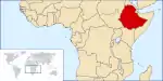 | اثيوبيا[22] (جمهورية إثيوبيا الفدرالية الديمقراطية) | ![]() | أديس أبابا | بير إثيوبي | الأمهرية | 1,104,300 | 75,067,000 | $823 |