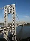 ![]() | جسر جورج واشنطن (1931) يحتوي على 14 ممرا للسيارات على مسارين، فوق نهر هدسون في مدينة نيويورك. |