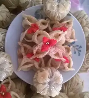 ![]() لايوجد | حلوة بشنيخة[23][24] | حلوة بشنيخة أو شباكية بشنيخة،[25]، هي حلوة تشبه قليلا الشباكية المغربية، وأصغر حجما منها، إلاأنها مقرمشة وطرية، وسميت بهذا الاسم لشبهها بعصيات البشنيخة التي تستعمل في تنقية الأسنان من العوالق والشوائب | الطحين والبيض والخل والماء والزهر والخميرة والفانيليا والزبدة والملح ثم يجمع العجين بالحليب والزيت الساخن والعسل.[26] |