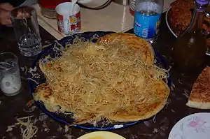 ![]() | البسطيلة | فيها أنواع كثيرة، كتلك المصنوعة بالسمك أو بقشريات البحر أو بالديك الرومي أو بلحم البقر، وما يهمنا في هذه القائمة هي تلك الأنواع من البسطيلة الحلوة،[48]
