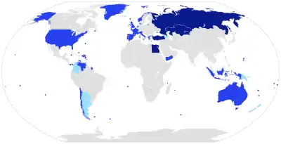 بين أوروبا وأميركا الشمالية وأميركا الجنوبية وأوقيانيا وأفريقيا