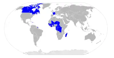 خاطة للعالم توضح الدول التي تعتبر فيها الفرنسية لغة رسمية