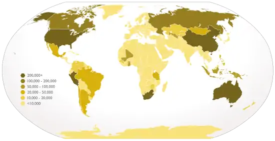هذه الإحصائيات مأخوذة من تقرير نشره موقع هيئة المسح الجيولوجي الأمريكية .