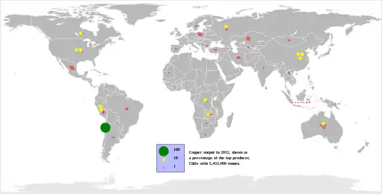 هذه قائمة الدول المنتجة لمعدن النحاس حسب إنتاجها لعام 2014.[1]