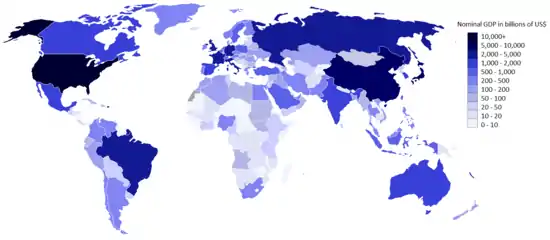 Countries by GDP (nominal) according to the كتاب حقائق العالم.[1]