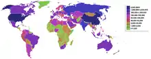 خريطة توضح الدول حسب انبعاث ثاني أوكسيد الكربون (الأزرق في المناطق الأعلى انبعاثا)