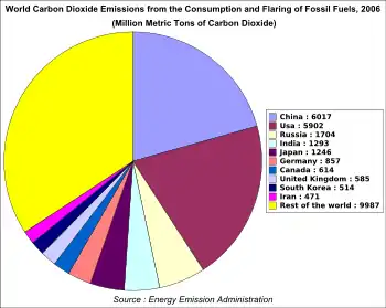 |CitationClass=تم تجاهله (مساعدة) - "الصين تحتل مكان الولايات المتحدة كأول دولة في إنبعاث أكسيد الكربون". Sci-Tech Today. 2006-06-21. مؤرشف من الأصل في 11 ديسمبر 2019. الوسيط