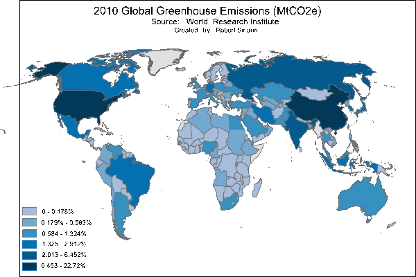 انبعاثات الغازات الدفيئة بالنسبة المئوية عام 2010