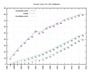 - "Internet users per 100 inhabitants 1997 to 2007", ICT Data and Statistics (IDS), International Telecommunication Union (ITU). Retrieved 25 مايو 2015. نسخة محفوظة 02 يناير 2018 على موقع واي باك مشين.