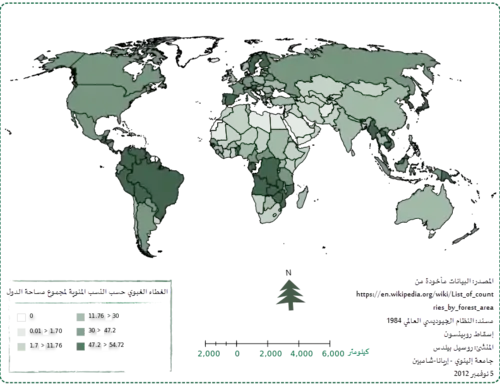 |CitationClass=تم تجاهله (مساعدة) - "أرقام ستُصيبكم بالدهشة : ما هي أكثر الدول العربية مساحةً للغابات ؟". طقس العرب. 13 أغسطس 2013. مؤرشف من الأصل في 8 أكتوبر 2015. اطلع عليه بتاريخ 28 أغسطس 2015. الوسيط