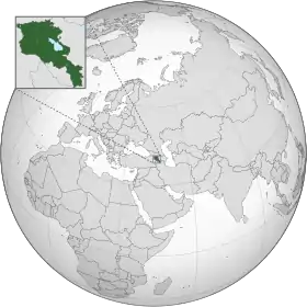 (بالأرمنية: Հայաստան — Հայաստանի Հանրապետությու) (هاياستان — هاياستاني هانرابيتوتيون) | يريفان (بالأرمنية: Երևան) (يريفان) |