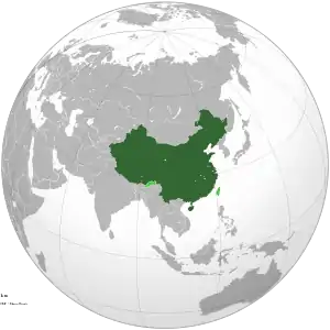 (بالصينية: 中国 — 中华人民共和国) (جونغغو — جونغهوا رينمين غونغهيغو) | بكين (بالصينية: 北京) (بيجينغ) |
