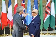 السبسي مع رئيس الوزراء الإيطالي باولو جينتيلوني أثناء مشاركته في قمة مجموعة السبع 2017 في إيطاليا.